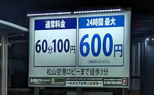 松山空港近くの格安駐車場 24時間600円で日数制限無し! クレジットカードもOK!